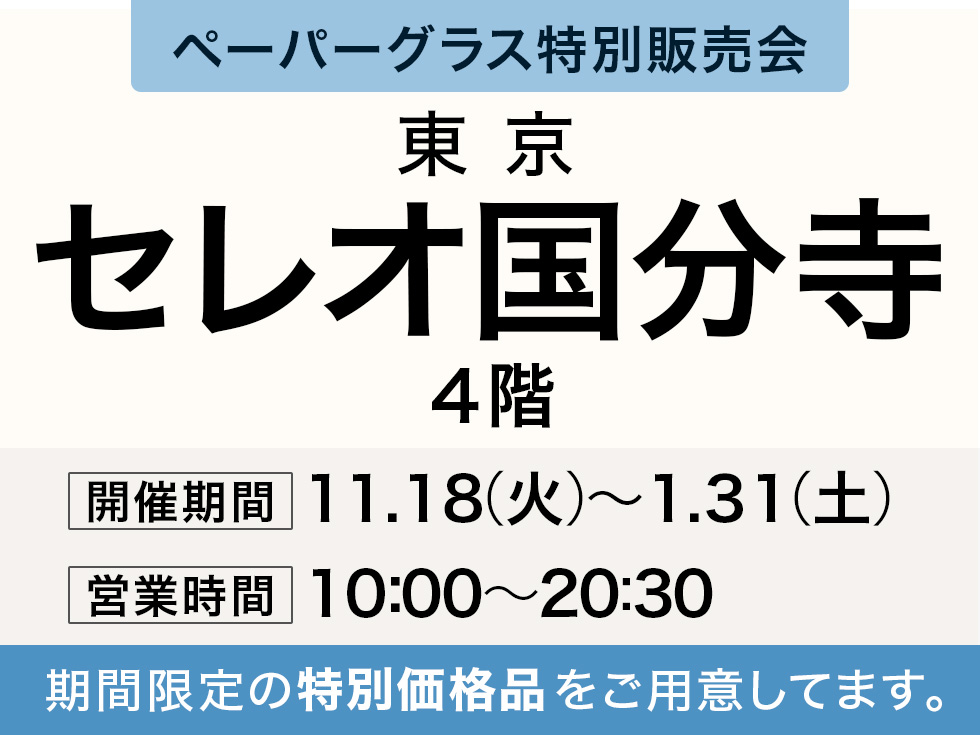 【東京:11月18日(火)〜1月31日(土)】セレオ国分寺にてペーパーグラス期間限定POP UP SHOP