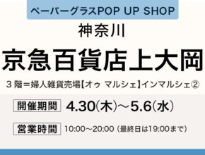 【福井・4月29日〜5月8日】道の駅 南えちぜん山海里@南条SA(上り)にてペーパーグラス特別販売会《終了》