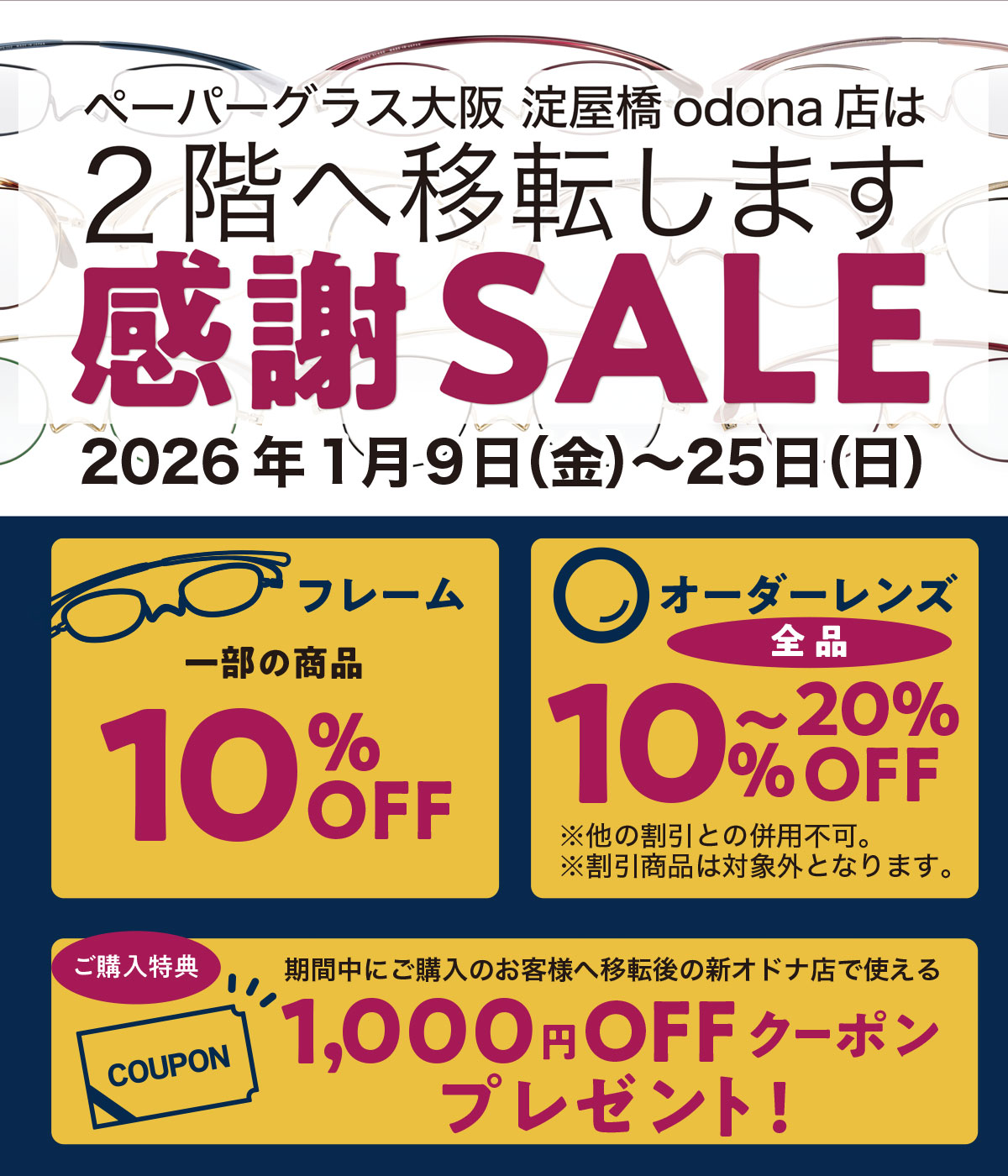 2026年2月1日(日) より淀屋橋odonaの2階へ移転 いたします。移転準備に伴い、2026年1月9日(金)から感謝SALEを開催!