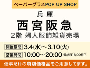 ペーパーグラス直営店9店舗目となる直営店が『羽田エアポートガーデン』に1/31(火)グランドオープンいたします!これを記念して4週に渡り『週替り』でフェアを開催いたします。数量限定の為お早めに☆