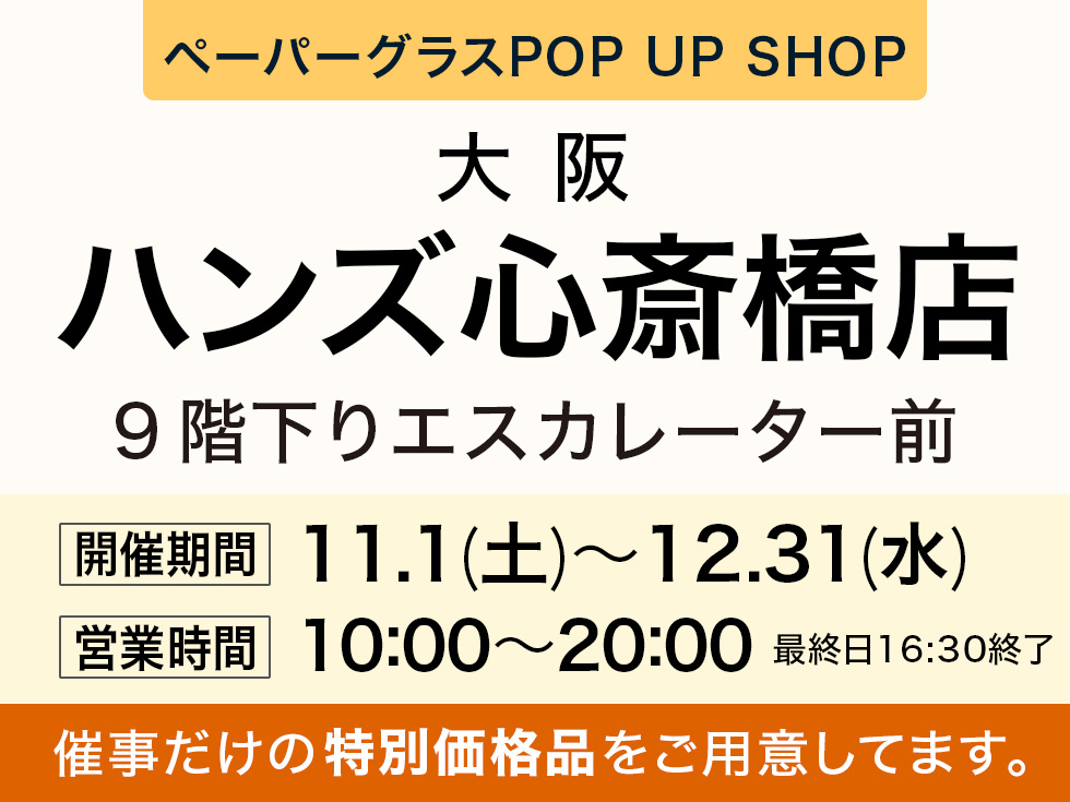 【大阪:11月1日(土)〜12月31日(水)】ハンズ心斎橋店にてペーパーグラス期間限定POP UP SHOP