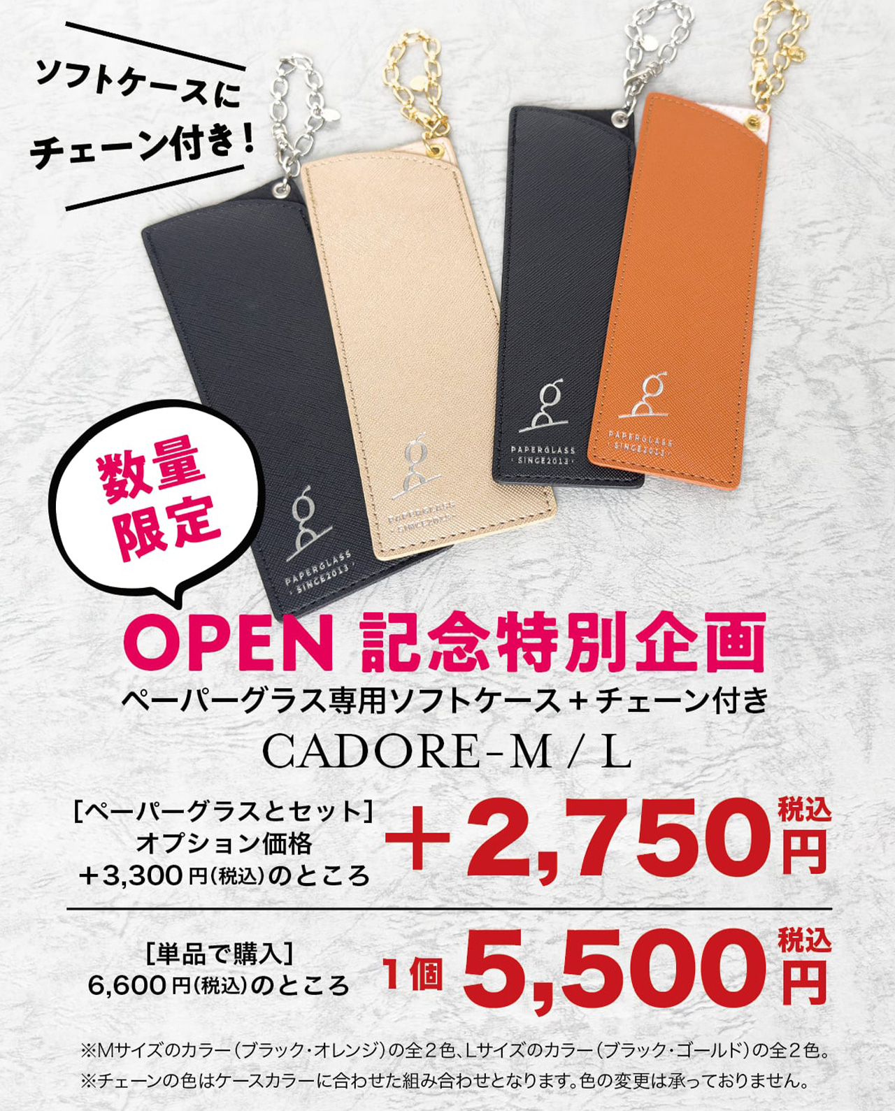 ③ペーパーグラス専用!チェーン付きソフトケース限定販売